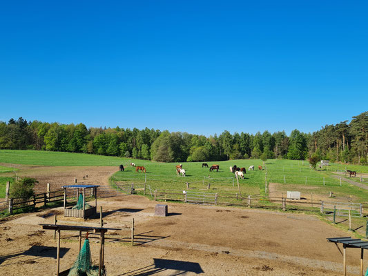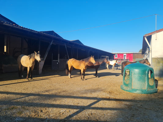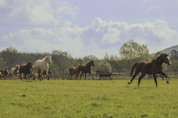 Euer Pferd kann entweder in die ca. 20 köpfige, gemischte und sehr gelassene Herde integriert werden und so in den Genuss größtmöglicher Sozialkontakte und Bewegungsfreiheit kommen oder sich auf Einzel- oder Zweierpaddocks austoben.